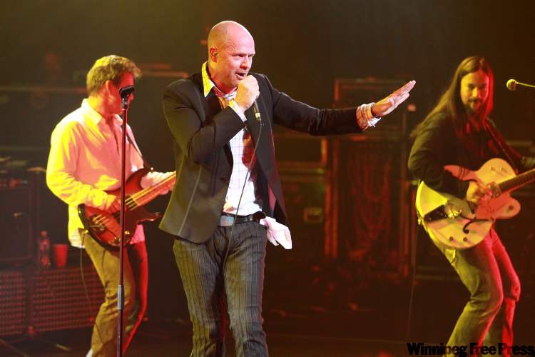 OTTAWA : SEPTEMBER 26, 2009– (L to r) Gord Sinclair on bass, Lead vocalist of The Tragically Hip, Gord Downie and Rob Baker on guitar. The Tragically Hip brought their “We Are The Same” tour to the National Arts Centre in Ottawa on September 26, 2009. Photo by John Major, The Ottawa Citizen. Can be used with Ken Meaney (Postmedia News). GREATEST-SONG